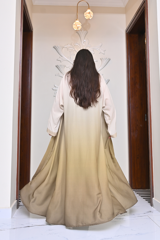 Cream & Gold Tie-Dye Abaya